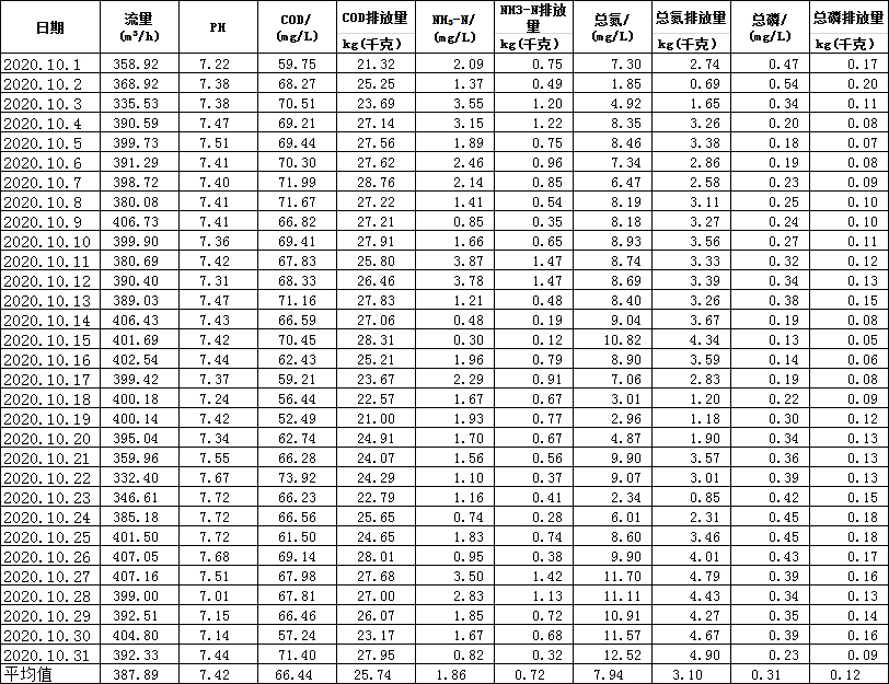 水在線監(jiān)測月報表(10月份)