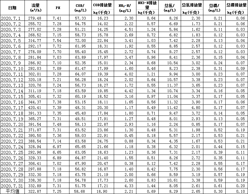 水在線監(jiān)測月報表(7月份)