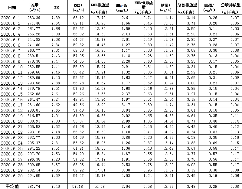 水在線監(jiān)測月報表(6月份)
