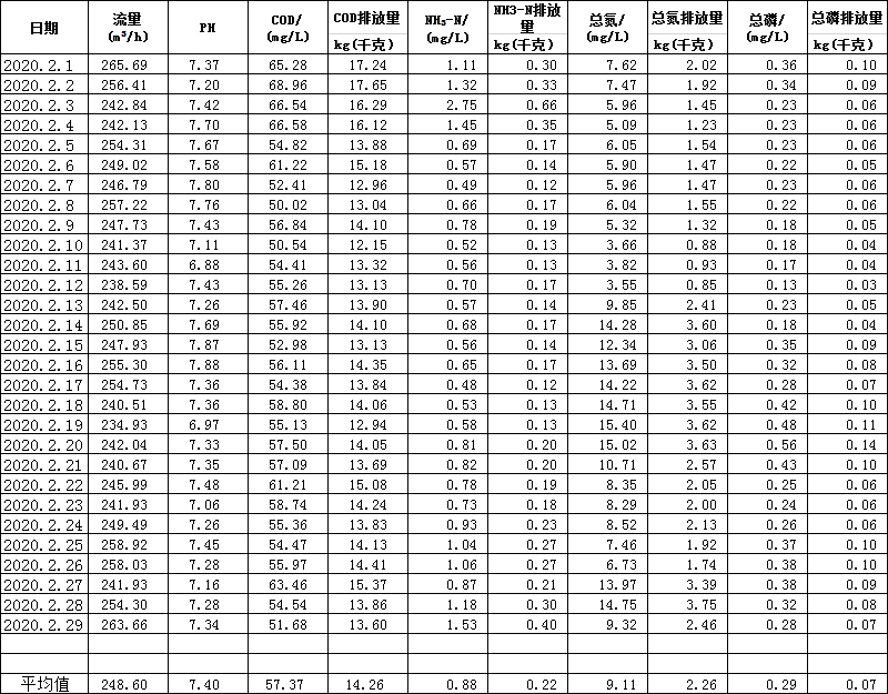 水在線監(jiān)測月報表(2月份)