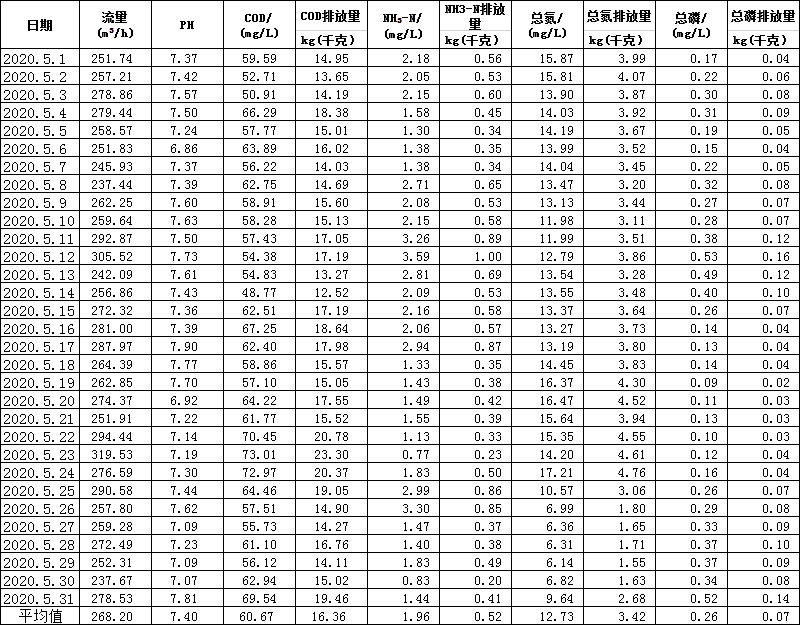水在線監(jiān)測月報表(5月份)