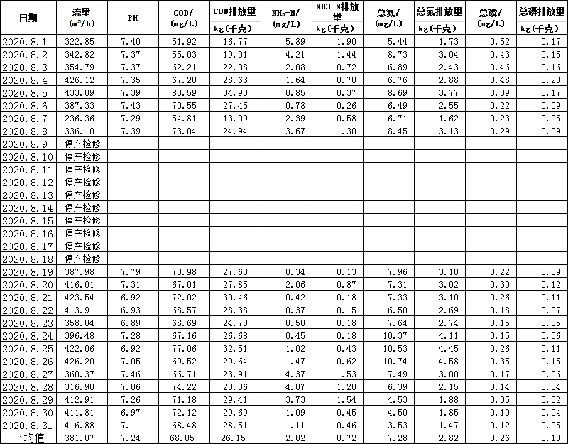 水在線監(jiān)測月報表(8月份)