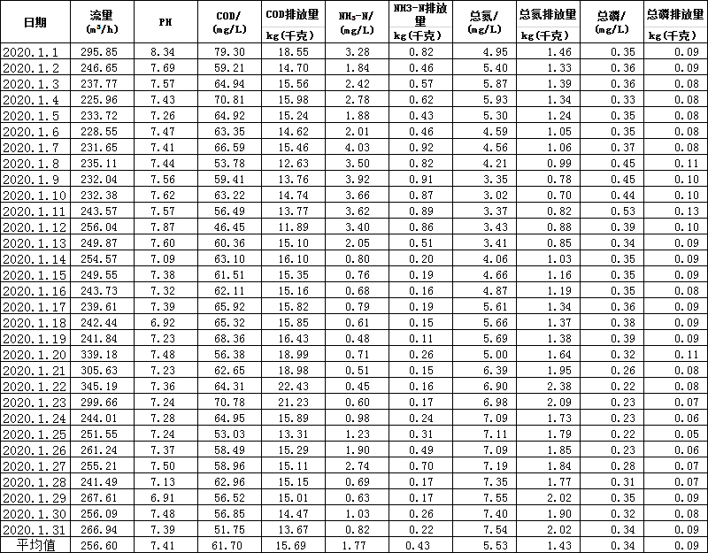 水在線監(jiān)測月報表(1月份)